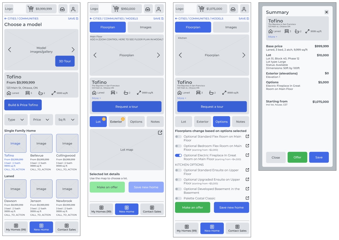 Testing low-fidelity concepts early helped us refine ideas before moving into detailed design. Small changes to language, layout, and sequencing made the flow easier for buyers to navigate.